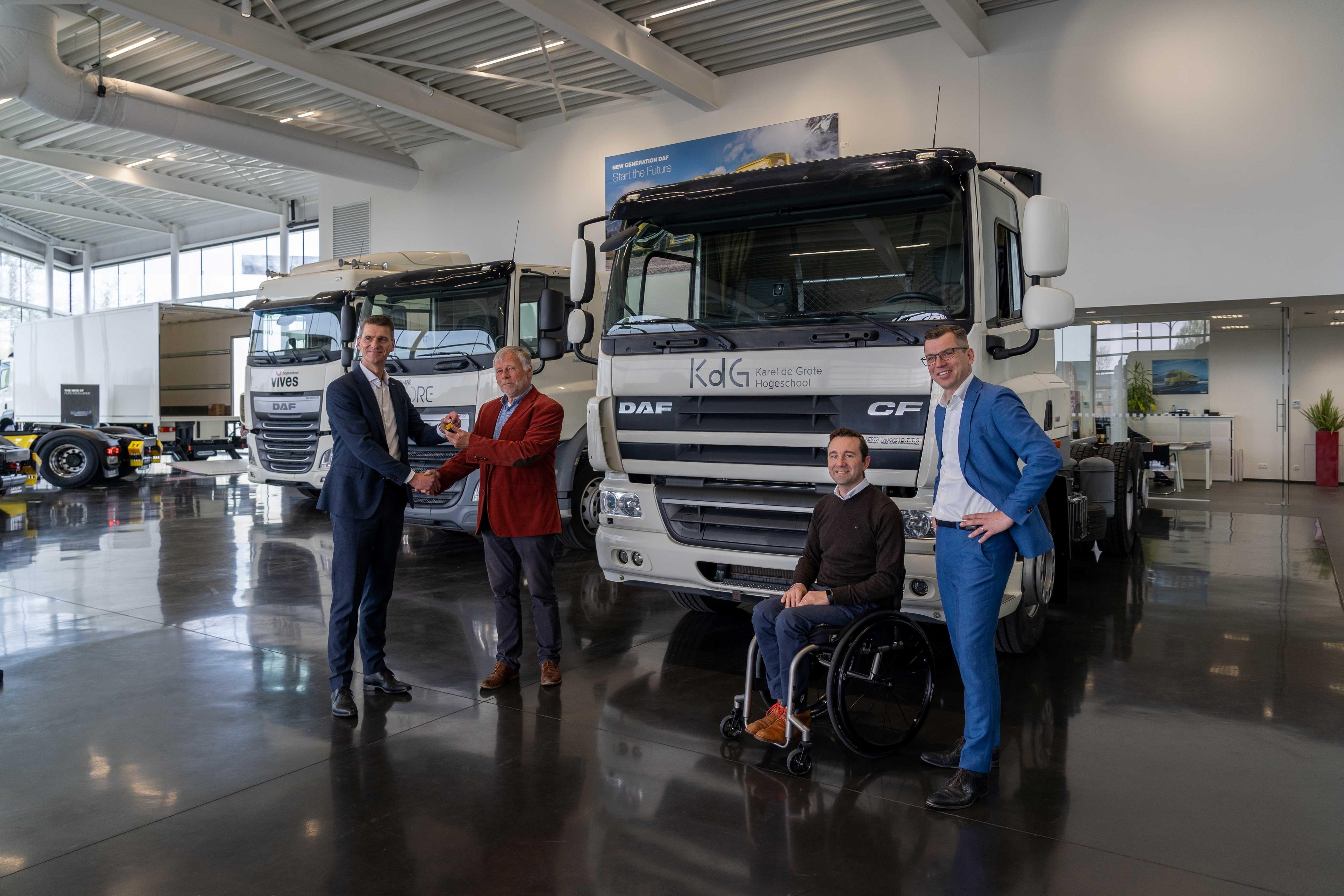 DAF overhandigt de sleutels van 3 opleidingsvoertuigen aan hogescholen Karel De Grote, Thomas More en Vives