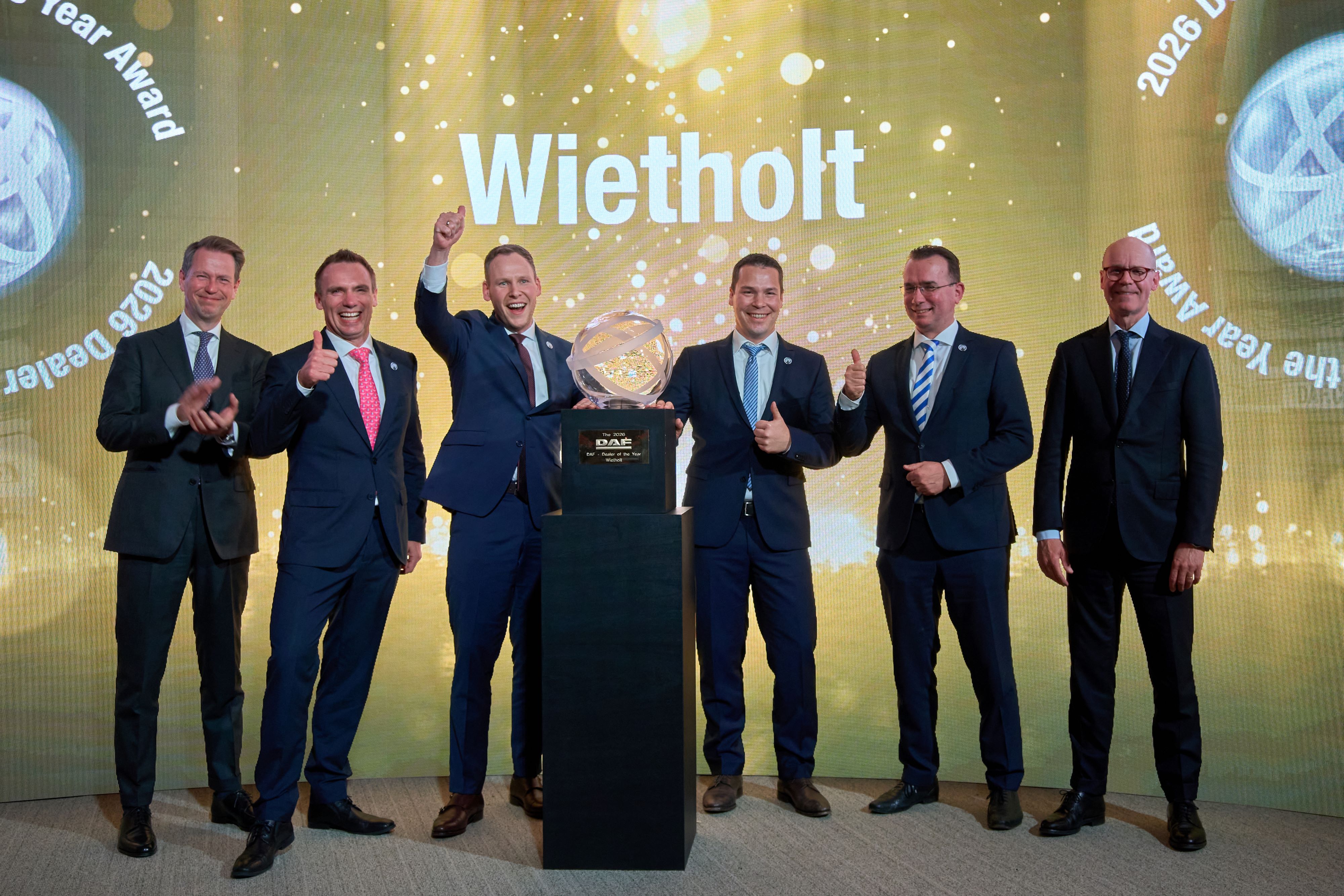 De Duitse DAF-dealer Wietholt Nutzfahrzeuge is tijdens de DAF International Dealer Meeting in het Spaanse Benidorm uitgeroepen tot ‘International DAF Dealer of the Year 2026’. Wietholt Nutzfahrzeuge ontving de erkenning voor zijn uitstekende prestaties en uitzonderlijke klantgerichtheid. “Wietholt toont keer op keer op alle vlakken een ongekende toewijding om topkwaliteit te leveren”, aldus Harald Seidel, president-directeur van DAF Trucks. “Daarmee is deze Duitse dealer de terechte winnaar van de award voor 2026.”